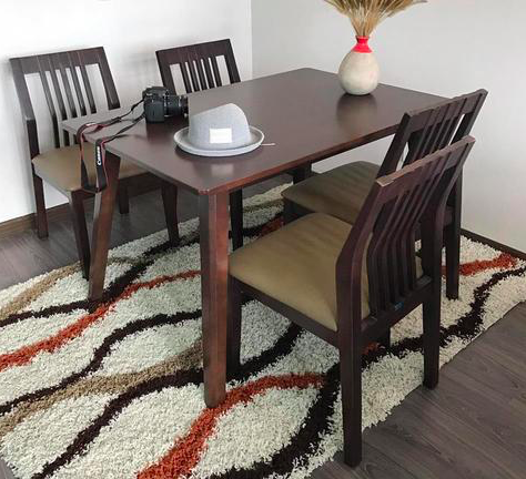 Bàn ăn với chất liệu mặt gỗ mdf phủ veneer , chân gỗ tự nhiên với một lớp đệm ngồi êm ái. Bạn sẽ cảm thấy thoải mái khi ngồi trên những mẫu ghế này. Đa dạng kích thước và mẫu mã sẽ giúp cho ngôi nhà của bạn đẹp hơn.