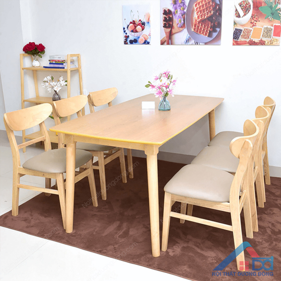 Bàn ăn với chất liệu gỗ tự nhiên với một lớp đệm ngồi êm ái. Bạn sẽ cảm thấy thoải mái khi ngồi trên những mẫu ghế này. Đa dạng kích thước và mẫu mã sẽ giúp cho ngôi nhà của bạn đẹp hơn.
