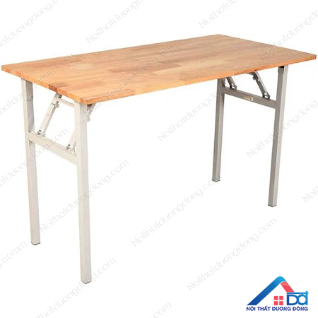 Bàn chân sắt gấp mặt gỗ cao su với hai loại kích thước độ dày mặt bàn phổ biến là 18mm hoặc có thể là 25mm theo yêu cầu của khách hàng. Bàn chân sắt gấp mặt gỗ cao su được thiết kế với bộ khung chắc chắn có núm căn chỉnh độ cân bằng. Bộ khung của bàn được gia công bằng những thanh sắt hộp phun sơn tĩnh điện và được hàn chắc chắn, mặt bàn được sản xuất với chất liệu gỗ công nghiệp được sơn phủ bóng.