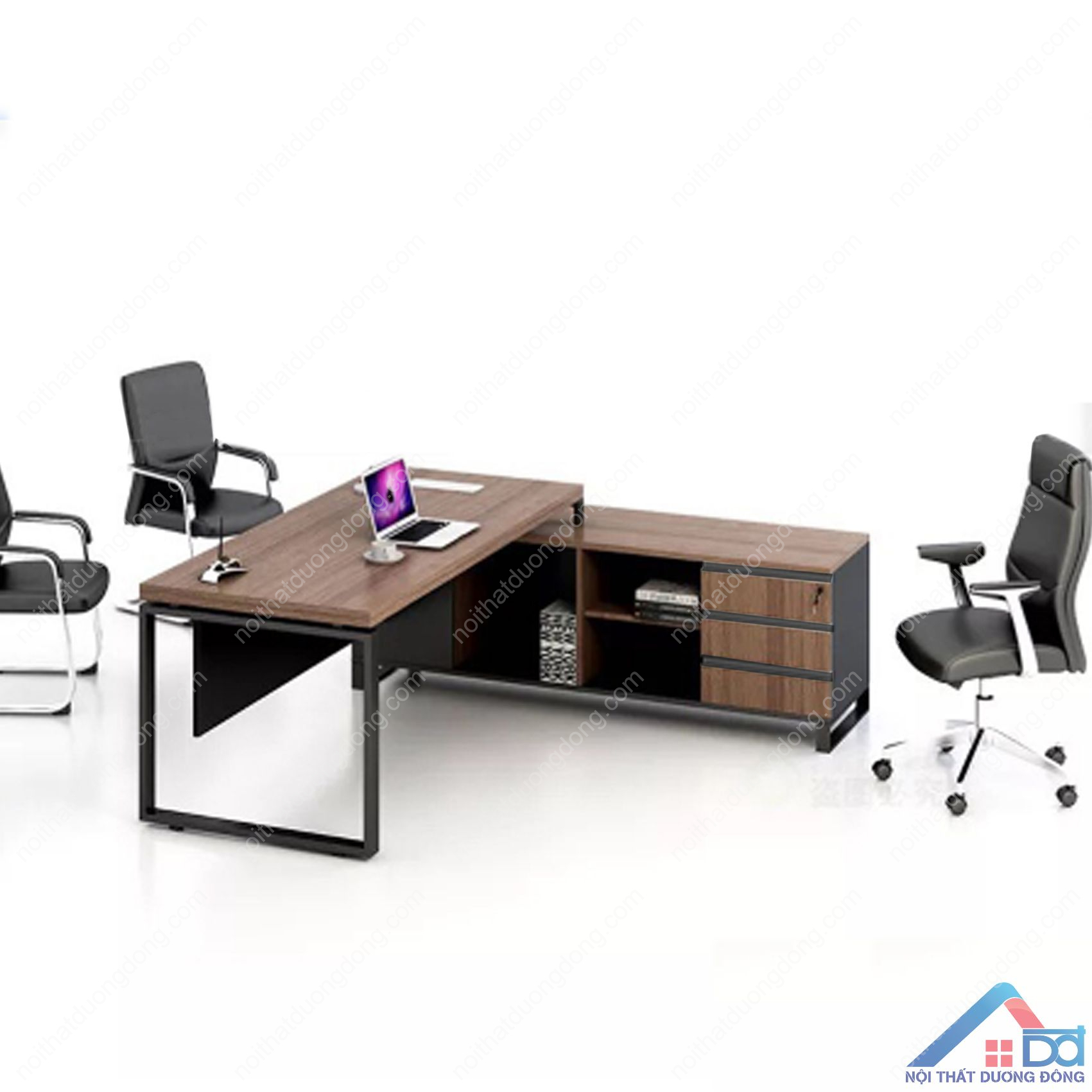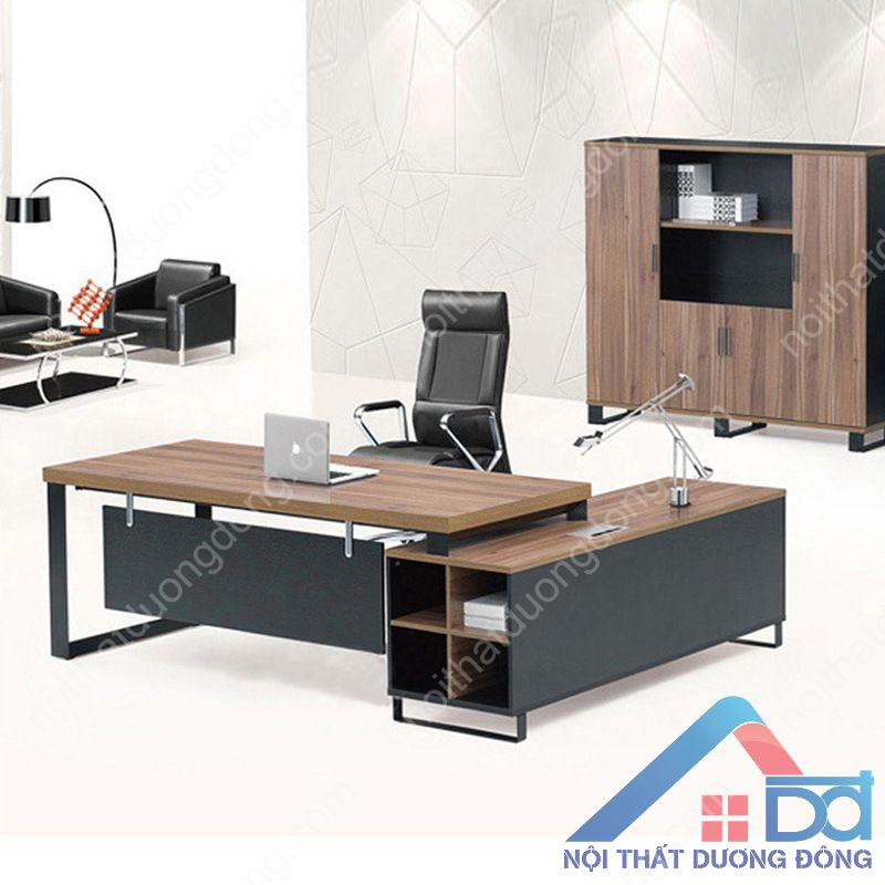 Bàn giám đốc 1m6 hiện đại có yếm được làm bằng chấn sắt mặt gỗ công nghiệp MFC phủ Melamine. Mặt bàn hình chữ nhật. Có tủ phụ đi kèm, thường được dùng cho lãnh đạo: trưởng phòng, giám đốc,.…thuộc dòng bàn cao cấp của Nội thất Dương Đông Với độ dày mặt bàn 25mm,