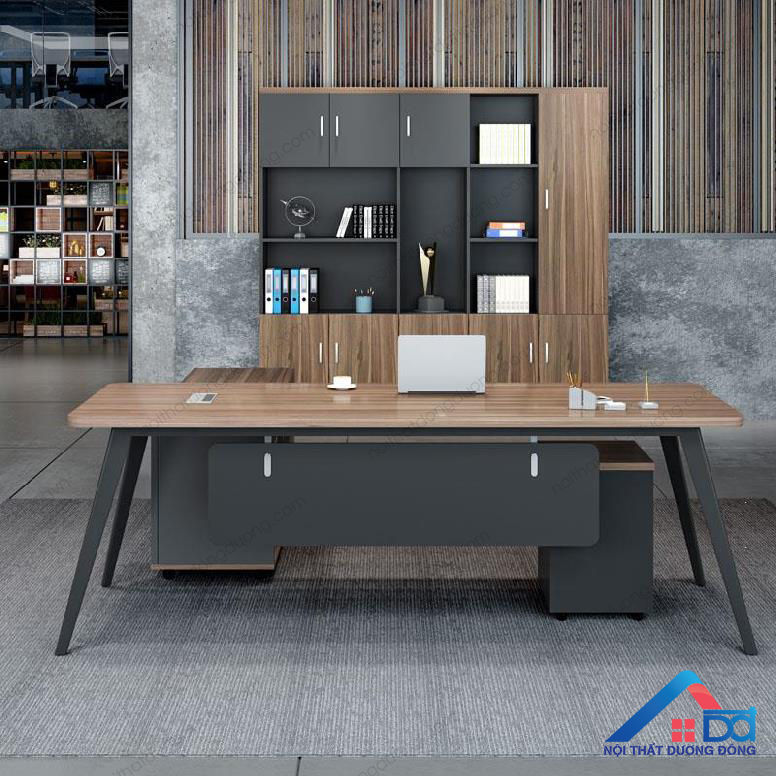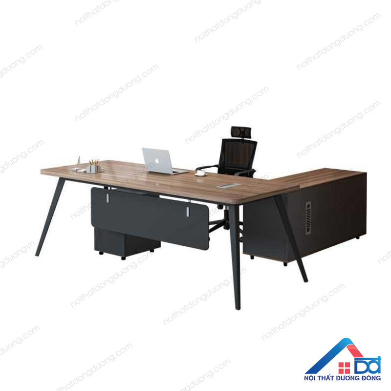 Bàn được làm bằng gỗ công nghiệp MFC phủ Melamine. Mặt bàn hình chữ nhật. Có tủ phụ đi kèm, thường được dùng cho lãnh đạo: trưởng phòng, giám đốc,.…thuộc dòng bàn cao cấp của Nội thất Dương Đông.