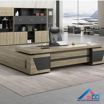 Bàn giám đốc hiện đại - GĐ 38 chất lượng cao được làm bằng chân sắt mặt gỗ công nghiệp MFC phủ Melamine chất lượng cao. Mặt bàn hình chữ nhật. Có tủ phụ đi kèm 2 bên bàn, bàn thường được dùng cho lãnh đạo: trưởng phòng, giám đốc,.…thuộc dòng bàn cao cấp của Nội thất Dương Đông.