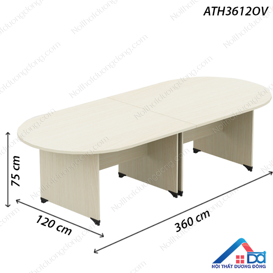 Bàn họp bầu dục 3m6 được làm bằng chất liệu gỗ công nghiệp cao cấp. Trên mặt bàn được phủ một lớp Melamine, sơn PU chống trầy xước tốt, ẩm mốc, bóng đẹp theo thời gian. Với chiếc mặt bàn hình bầu dục vuông vắn, nổi bật mang lại không gian sang trọng cho văn phòng của bạn.