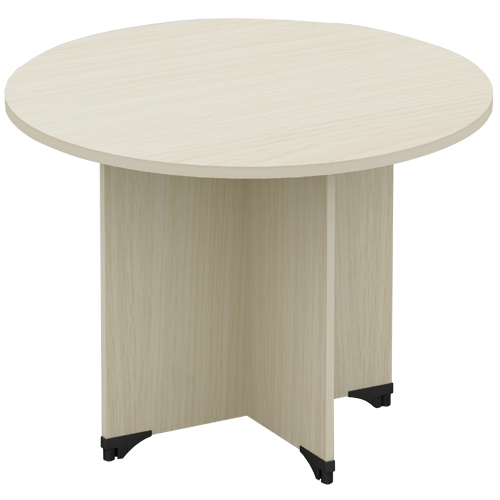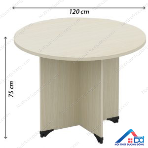 Bàn họp tròn đường kính 1m được làm bằng chất liệu gỗ công nghiệp cao cấp. Mặt bàn được phủ một lớp Melamine, sơn PU chống trầy xước tốt, ẩm mốc, bóng đẹp theo thời gian. Với chiếc mặt bàn hình tròn, nổi bật mang lại không gian sang trọng cho văn phòng của bạn.
