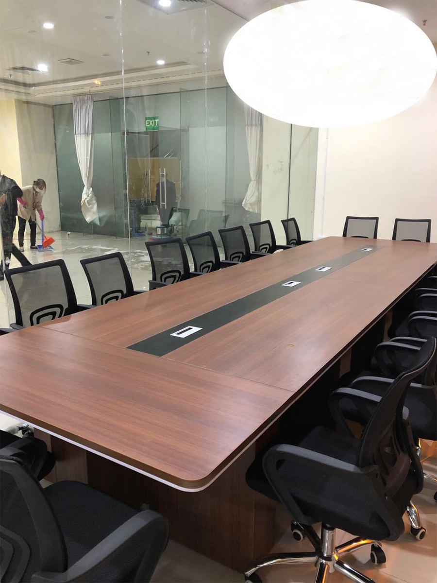 Bàn Họp Văn Phòng gỗ cao cấp được làm bằng chất liệu gỗ MFC phủ melamin cao cấp. chống trầy xước tốt, ẩm mốc, bóng đẹp theo thời gian.