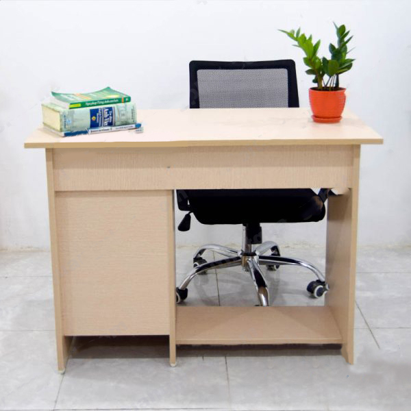 Với độ dày 18mm hoặc có thể là 25mm theo yêu cầu riêng của khách. Bàn có thiết kế dạng thẳng và hộc để đựng tài liệu và đố dùng. Ngoài ra, loại bàn này còn có ngăn kéo để bàn phím và đế để CPU. Bàn có 4 chân được làm bằng nhựa nên không tạo độ rung khi kê bàn ở bất kỳ mặt bằng nào.