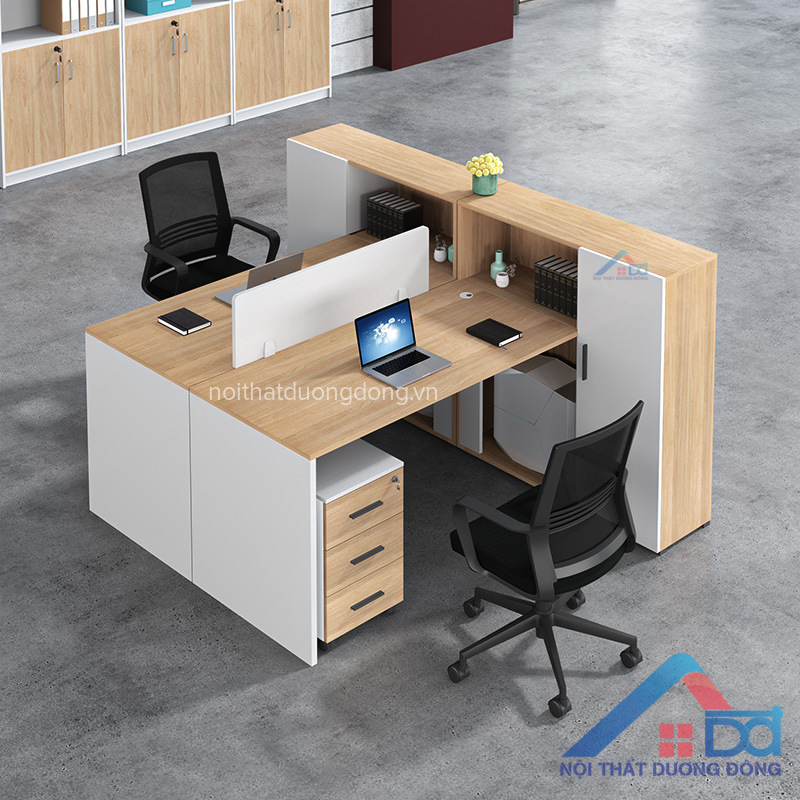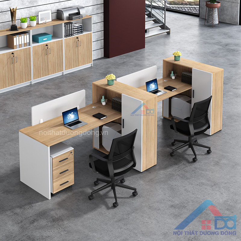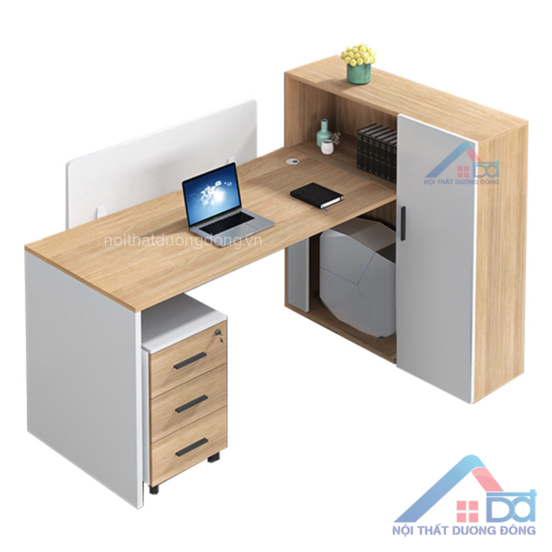 Bàn làm việc hiện đại được làm bằng chất liệu gỗ công nghiệp cao cấp. trên mặt bàn được phủ một lớp Melamine chống trầy xước tốt, ẩm mốc, bóng đẹp theo thời gian. Ngoài ra bàn còn có thể di chuyển được một cách dễ dàng.