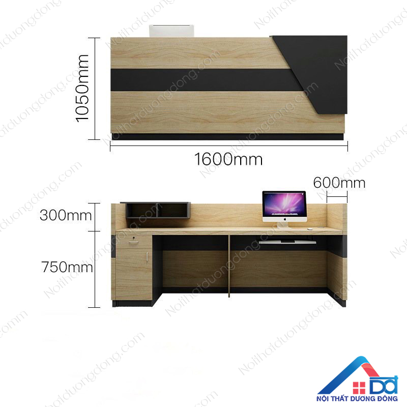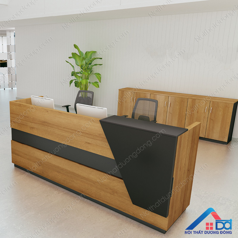Kích thước bàn quầy lễ tân tại mỗi công ty khác nhau tùy theo diện tích mặt bằng mà có thiết kế phù hợp để khi khách hàng hay đối tác của công ty bước vào có thể gây được ấn tượng với họ bởi bàn quầy lễ tân thường được đặt gần tại vị trí ra vào của công ty là bộ mặt đại diện cho công ty đồng thời còn hỗ trợ khách hàng và đối tác có được thông tin mà họ mong muốn một cách nhanh chóng nhất. Vì vậy thiết kế bàn quầy lễ tân như thế nào cho phù hợp với diện tích mặt bằng và hợp phong thủy là điều hết sức quan trọng. Nội thất Dương Đông tự hào là đơn vị với nhiều năm kinh nghiệm trong việc thiết kế lắp đặt thi công quầy lễ tân với đủ mẫu mã sản phẩm, chất liệu và kích thước khác nhau.