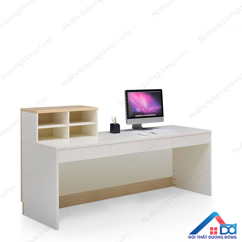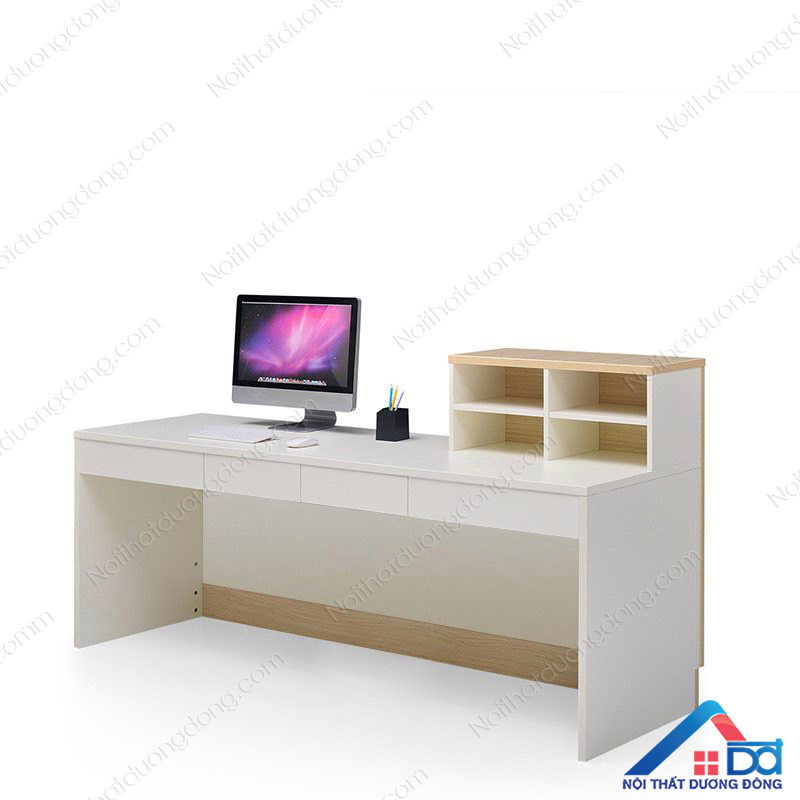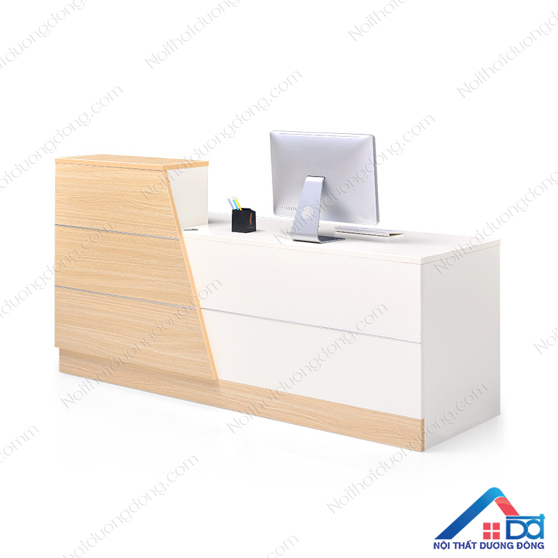 Kích thước bàn quầy lễ tân tại mỗi công ty khác nhau tùy theo diện tích mặt bằng mà có thiết kế phù hợp để khi khách hàng hay đối tác của công ty bước vào có thể gây được ấn tượng với họ bởi bàn quầy lễ tân thường được đặt gần tại vị trí ra vào của công ty là bộ mặt đại diện cho công ty đồng thời còn hỗ trợ khách hàng và đối tác có được thông tin mà họ mong muốn một cách nhanh chóng nhất. Vì vậy thiết kế bàn quầy lễ tân như thế nào cho phù hợp với diện tích mặt bằng và hợp phong thủy là điều hết sức quan trọng. Nội thất Dương Đông tự hào là đơn vị với nhiều năm kinh nghiệm trong việc thiết kế lắp đặt thi công quầy lễ tân với đủ mẫu mã sản phẩm, chất liệu và kích thước khác nhau.