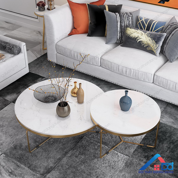 Bàn trà đá đôi chân sắt 3 cạnh này thường được sử dụng trong phòng khách với không gian lớn. Chúng được kết hợp với nhiều dáng sofa da hoặc nỉ cao cấp. Sản phẩm mang lại cho không gian nhà bạn sang trọng hơn.