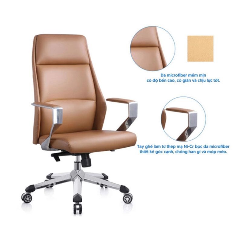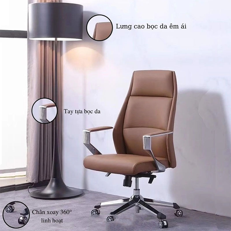 Ghế giám đốc da là chiếc ghế chắc chắn giúp sếp an tâm khi ngồi. Đây là dòng ghế được nhiều sếp lựa chọn dành cho văn phòng. Với các bộ phận được kết nối chắc chắn với nhau như phần tay ghế, khung bánh xe chịu lực, trục piston lên xuống tạo sự cân đối và ổn định cho chiếc ghế.