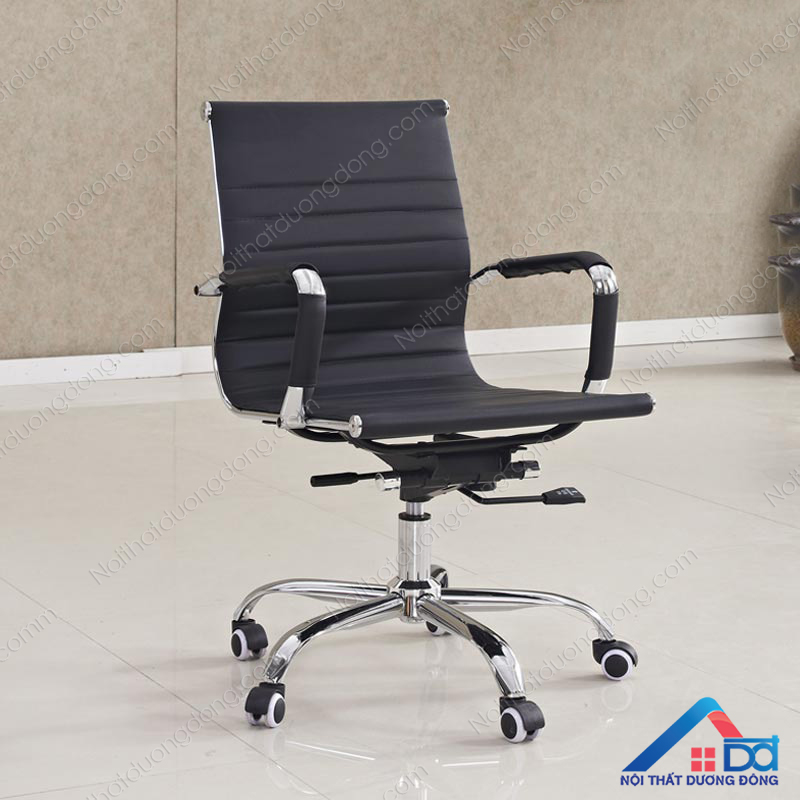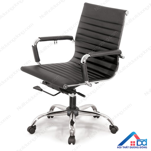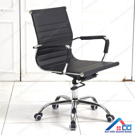 Ghế xoay da lưng thấp được làm từ chất liệu da lưng màu đen giúp bạn ngồi làm việc thoải mái. Ghế được làm rất chắc chắn với lớp da mịn giúp bạn thả lỏng cơ thể khi làm việc. Đặc biệt, chân ghế xoay có thể giúp bạn dễ dàng di chuyển trong phòng làm việc.