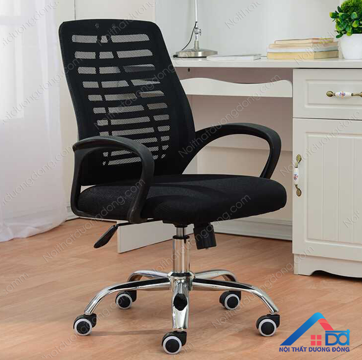 Ghế xoay lưng lưới dày màu đen giúp bạn ngồi làm việc thoải mái. Ghế được làm rất chắc chắn với lớp đệm dày giúp bạn thả lỏng cơ thể khi làm việc. Đặc biệt, chân ghế xoay có thể giúp bạn dễ dàng di chuyển trong phòng làm việc.