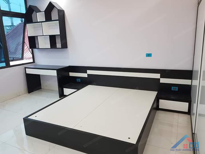 1. Giường ngủ được làm từ gỗ MDF phủ melamine chống mối mọt, cong vênh.