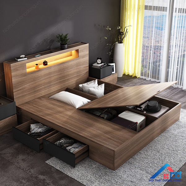 Được thiết kế với kiểu dáng tối giản, đường nét trau chuốt, tinh tế, mẫu Giường ngủ đầu giường có đèn led đang là lựa chọn của nhiều khách hàng khi đến với Nội thất Dương Đông.