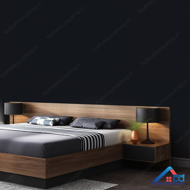 - Giường ngủ được làm từ gỗ MDF phủ melamine chống mối mọt, cong vênh.