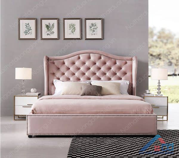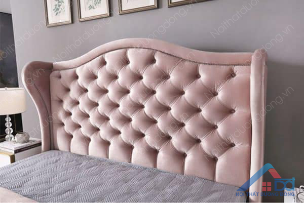 Giường ngủ được làm từ gỗ MDF phủ melamine bọc nỉ