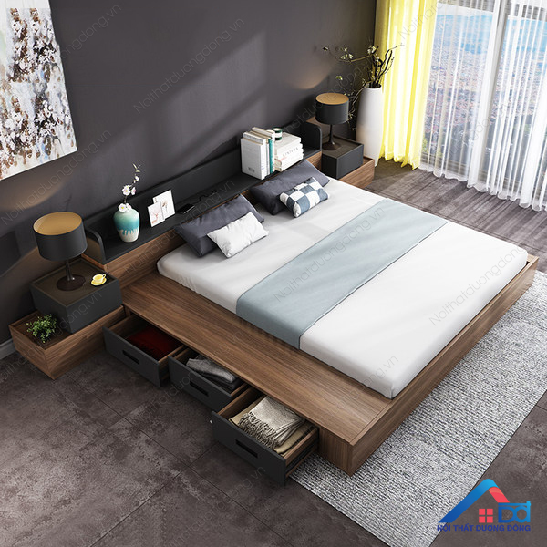 Được thiết kế với kiểu dáng tối giản, đường nét trau chuốt, tinh tế, mẫu Giường ngủ hiện đại có ngăn kéo lệch đang là lựa chọn của nhiều khách hàng khi đến với Nội thất Dương Đông.