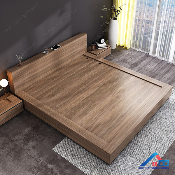 - Giường ngủ được làm từ gỗ MDF phủ melamine chống mối mọt, cong vênh.