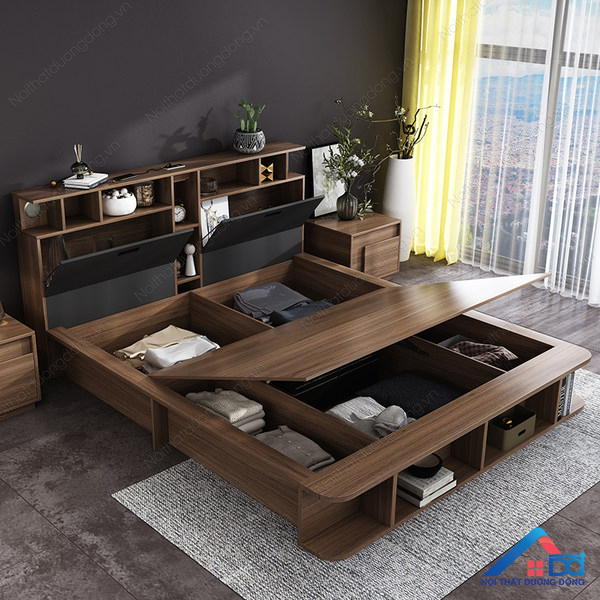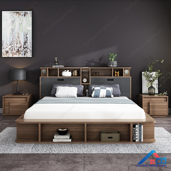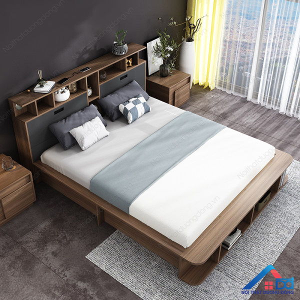 Được thiết kế với kiểu dáng tối giản, đường nét trau chuốt, tinh tế, mẫu giường ngủ thông minh có kệ để đồ đang là lựa chọn của nhiều khách hàng khi đến với Nội thất Dương Đông.