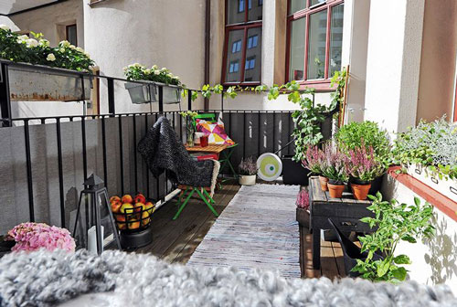 Với những ban công có diện tích nhỏ như thế này thì việc kết hợp giữa những chậu cây cảnh và hoa với một chiếc bàn ghế gấp gọn quả là một ý tường không tồi phải không các bạn.