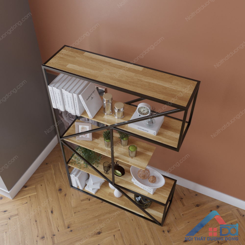 Chi tiết Kệ sách khung sắt chữ E gỗ cao su