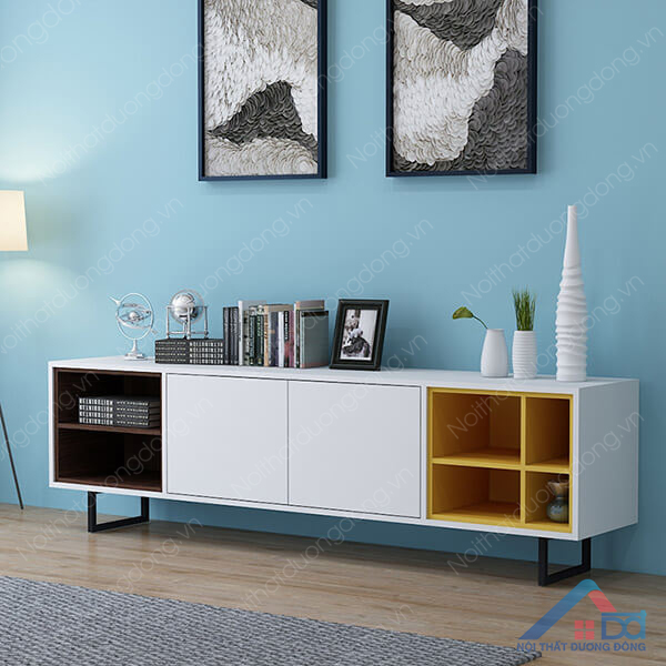 Kệ tivi hiện đại cho phòng khách với lối thiết kế nhỏ gọn vừa hiện đại vừa tiện dụng với người dùng, mag đến không gian phòng khách nổi trội, sinh động và cuốn hút.
