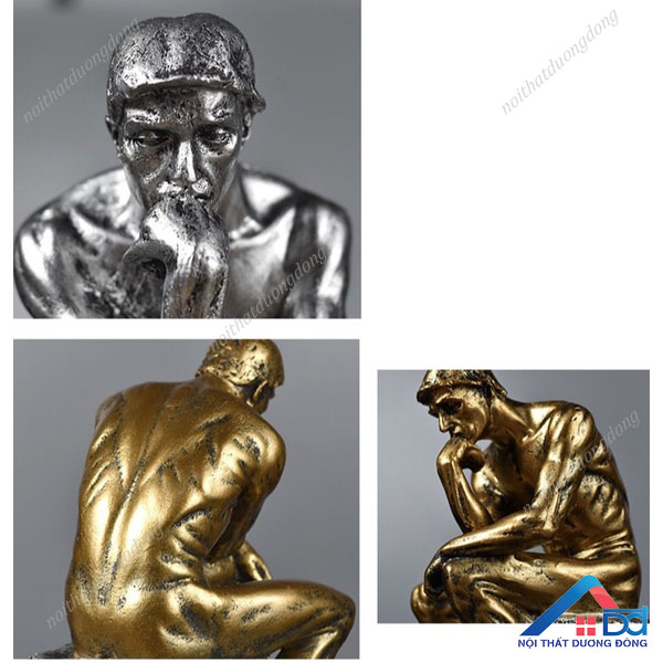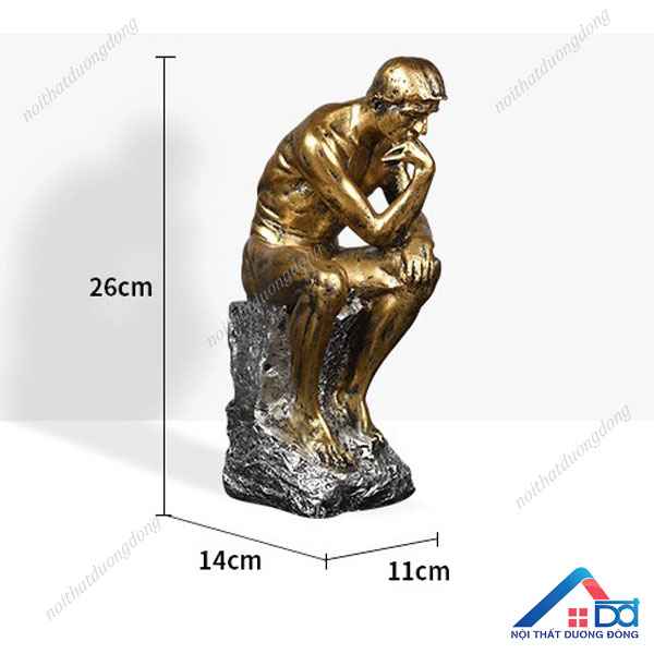 * Mô tả sản phẩm - Tượng Người Suy Tư (Tiếng pháp: Le Penseur) của nhà điêu khắc nổi tiếng người Pháp Auguste Rodin (1840-1917). Đây là một trong nhiều tác phẩm trứ danh của ông, tác phẩm gốc được ông làm từ năm 1880 đến 1882. Bức tượng cao khoảng 70 cm, mô tả một người đàn ông ngồi trên bệ, nghiêng người, tựa đầu vào mu bàn tay phải. Mọi bắp thịt trên cơ thể người đàn ông này đều căng ra khi anh ta dường như chìm trong suy nghĩ. - Năm 1904, Rodin đã trưng bày một phiên bản Thinker bằng đồng cao 1,8m, tách biệt hẳn với Gates of Hell tại Salon de Paris. Phiên bản này thu hút nhiều sự chú ý hơn hẳn so với phiên bản nhỏ mà ông từng làm trước đó. Năm 1922, phiên bản này được chuyển đến khuôn viên của Bảo tàng Rodin và trở thành phiên bản nổi tiếng nhất, đến giờ vẫn khiến người xem mê mẩn. - Mô hình tượng Người suy tư mang phong cách trìu tượng độc đáo phù hợp làm quà tặng bạn bè, đồng nghiệp, người thân trang trí kệ tủ, bàn làm việc, phòng khách…