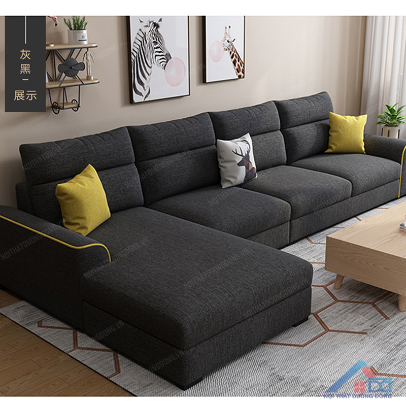 1. Sofa chữ L đẹp được dựng trên khung gỗ tự nhiên đã qua tẩm sấy, chống mối mọt, giúp bộ sofa chắc chắn, nhiều người có thể ngồi cùng một lúc