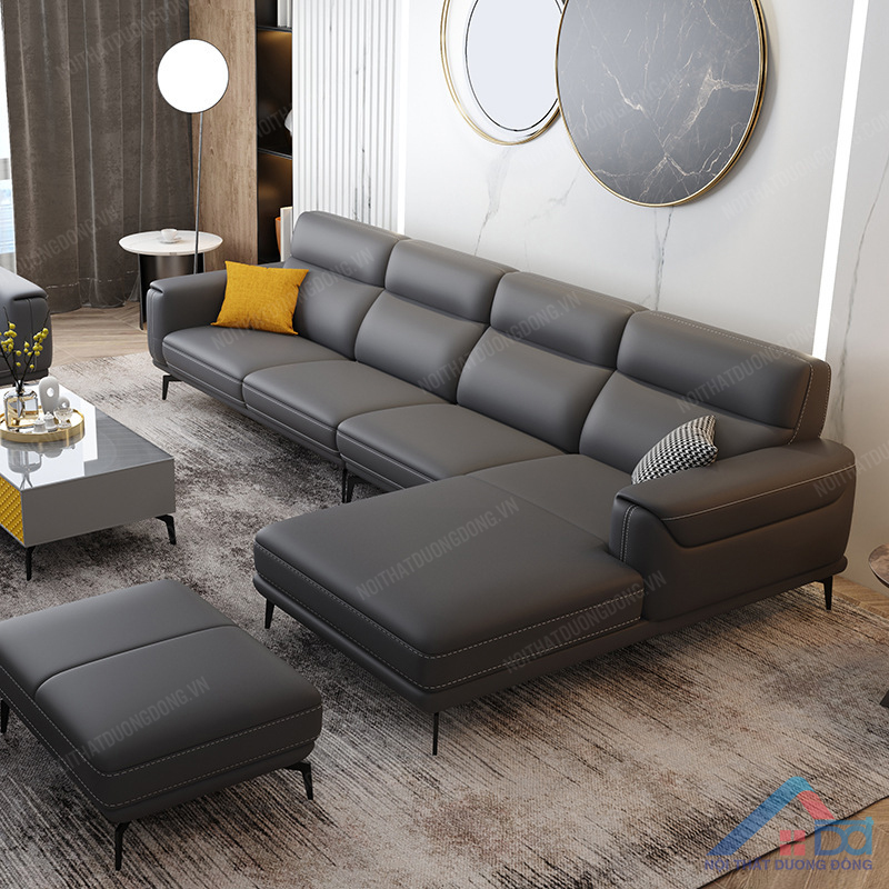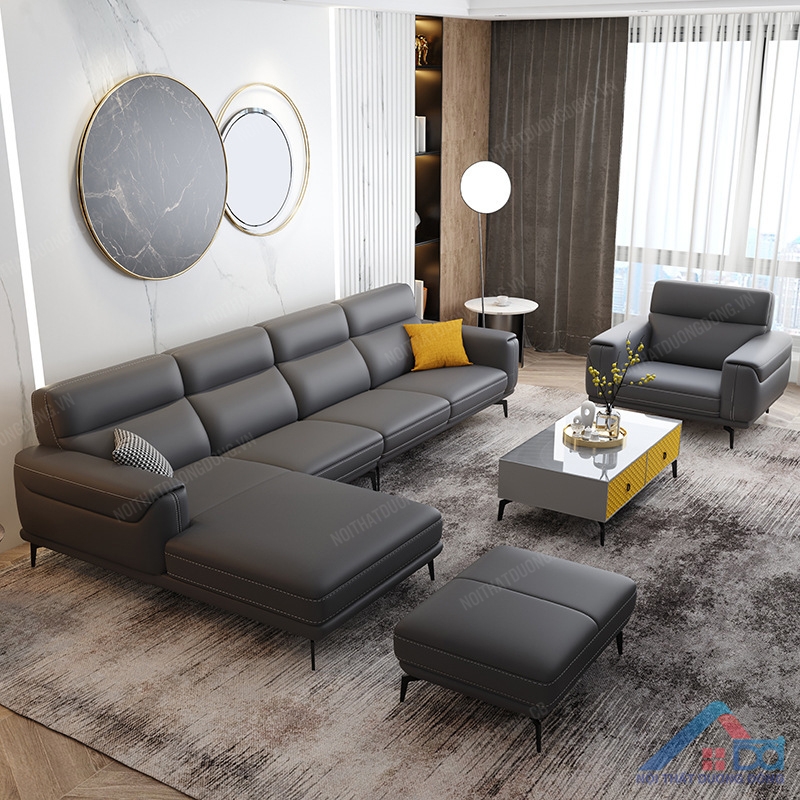 Mẫu sofa da đẹp SF 44 thu hút khách hàng bởi thiết kế thanh lịch của mình. Kiểu dáng góc chữ L mới mẻ hiện đại, trang nhã, bắt mắt.