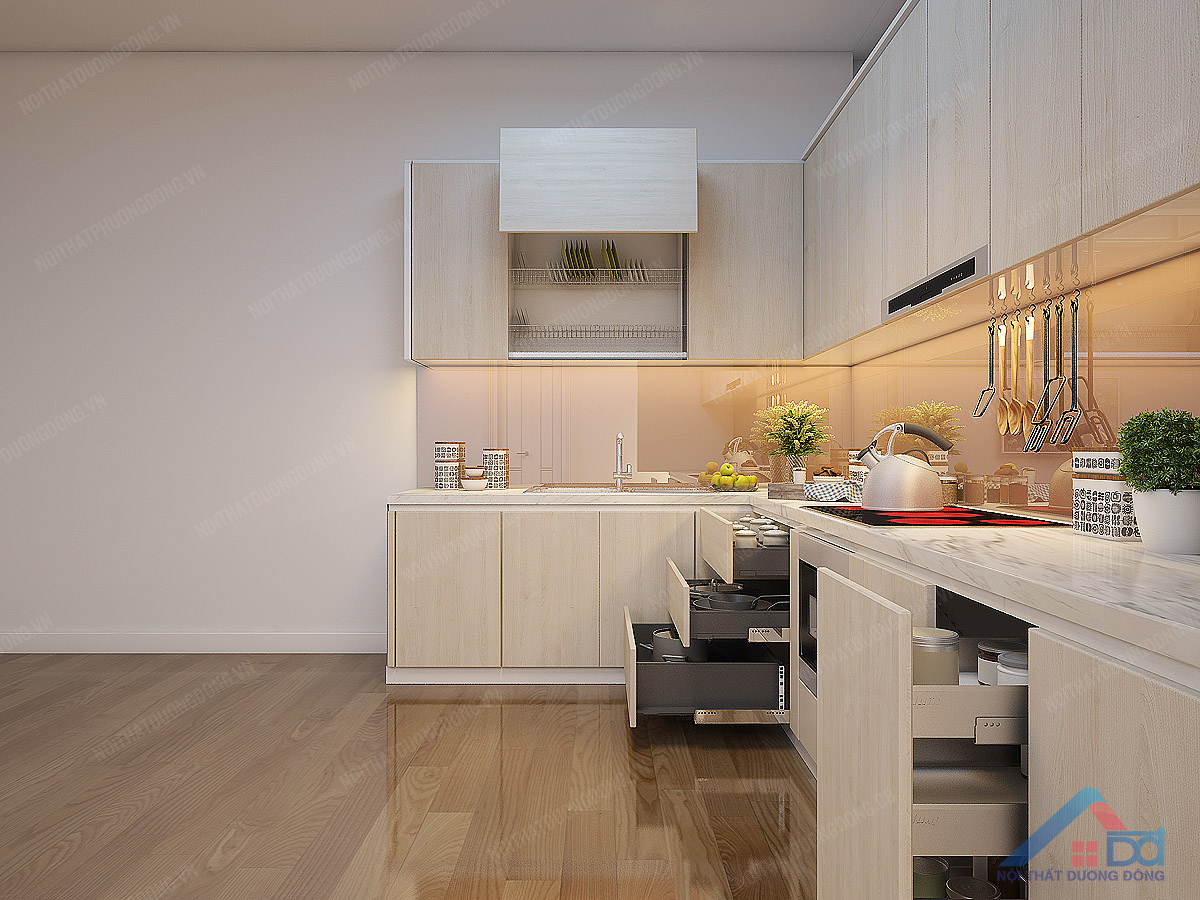 Giá không bao gồm : Phụ kiện tủ bếp, giá xoong nồi, chậu vòi, tay nắm, hộc kéo,...như thiết kế.