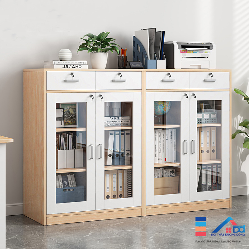 Văn phòng của bạn sẽ không thể thiếu những mẫu Tủ đựng hồ sơ cánh kính được sử dụng để đựng đồ cá nhân, hồ sơ, tài liệu, tại các văn phòng, cơ quan, nhà hàng, xí nghiệp,…Chiếc tủ được làm bằng gỗ công nghiệp cao cấp, bóng mịn chống trầy xước. Tủ có thiết kế hiện đại và có tay nắm kéo, ổ khóa cùng các ngăn để tài liệu riêng biệt.