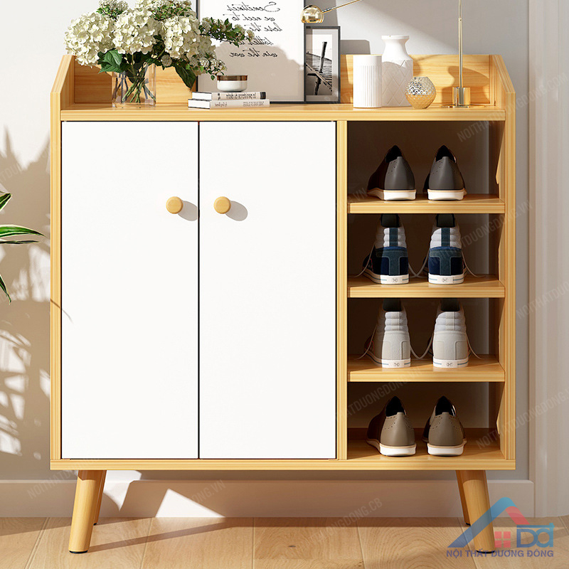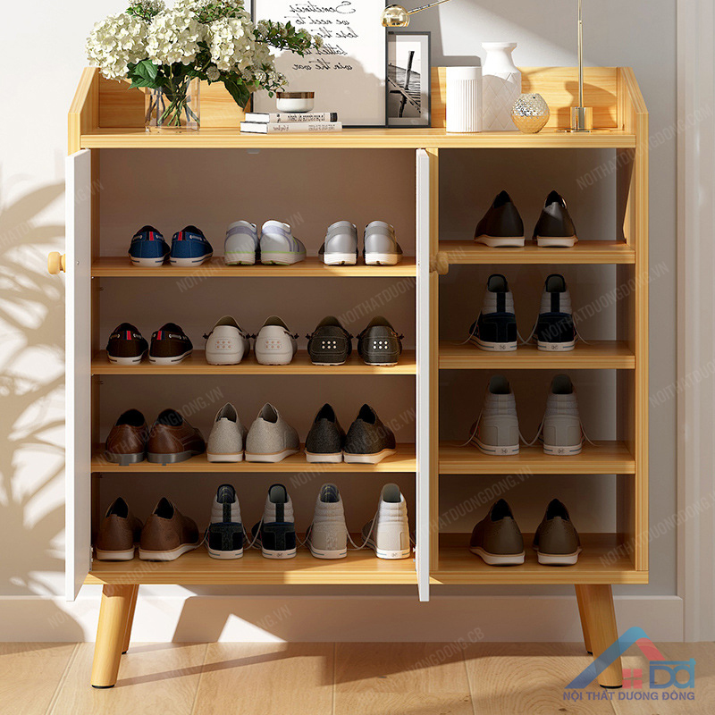Ngôi nhà của bạn không thể thiếu những mẫu Tủ giầy cánh mở chân gỗ sồi đẹp được sử dụng để đựng đồ cá nhân, giày dép tại các văn phòng, cơ quan, nhà hàng, xí nghiệp,…Chiếc tủ được làm bằng gỗ nhập khẩu cao cấp, được pjur melanin bóng mịn chống trầy xước. Tủ có thiết kế 2 cánh và có tay nắm kéo, cùng các ngăn để giày dép riêng biệt.