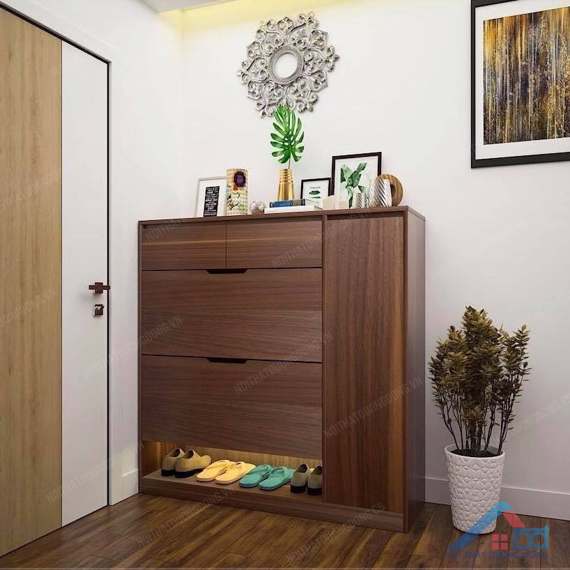 Ngôi nhà của bạn không thể thiếu những mẫu tủ giày thông minh 4 ngăn nâu đẹp được sử dụng để đựng đồ cá nhân, giày dép tại các văn phòng, cơ quan, nhà hàng, xí nghiệp,…Chiếc tủ được làm bằng gỗ công nghiệp, được phie melamin chống trầy xước. Tủ có thiết kế 3 cánh và có tay nắm kéo, cùng các ngăn để giày dép riêng biệt.