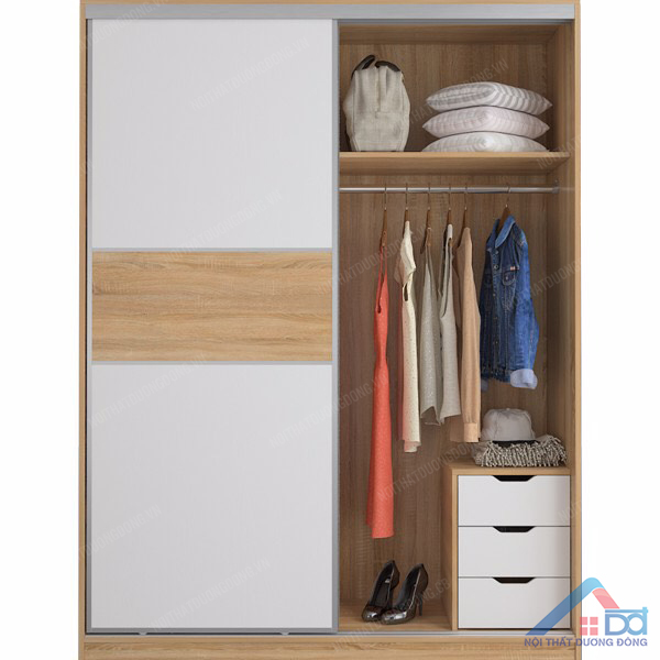 Tủ quần áo 1m6 cánh lùa là dòng tủ quần áo thiết kế cánh lùa mở ngang giúp tiết kiệm diện tích và không gian. Với phong cách phối 2 màu, thiết kế sọc ngang, dày ở vị trí giữa, thuộc mặt ngoài của tủ giúp tạo điểm nhấn cho sản phẩm. Tủ có nhiều ngăn, giúp gia chủ có đủ diện tích cất quần áo, chăn màn, ... mà vẫn đảm bảo sự gọn gàng, ngăn nắp.