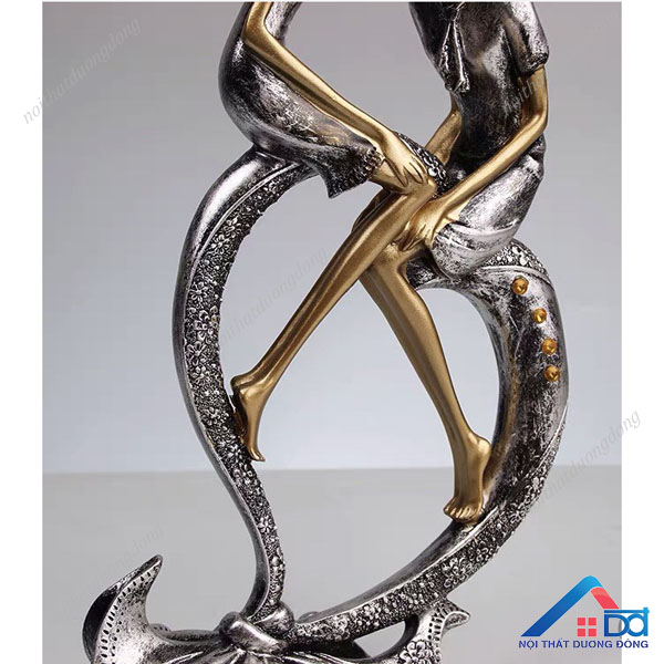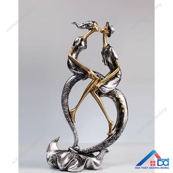 Tượng Cặp đôi tình nhân ngự trên trái tim hạnh phúc mang phong cách Châu Âu hiện đại, được chế tác từ nhựa tổng hợp cao cấp. Một mô típ điển hình biểu tượng cho tình yêu đôi lứa, hạnh phúc viên mãn. Thiết kế trang nhã, họa tiết tinh tế, màu bạc giả kim dưới ánh đèn decor càng khiến cho không gian bài trí thêm lung linh, lãng mạn rất phù hợp làm đồ decor cho phòng khách, tủ, kệ, giá sách...Một vật phẩm không thể bỏ qua để lựa chọn làm quà tặng bạn bè, người thân nhân dịp hỷ sự.